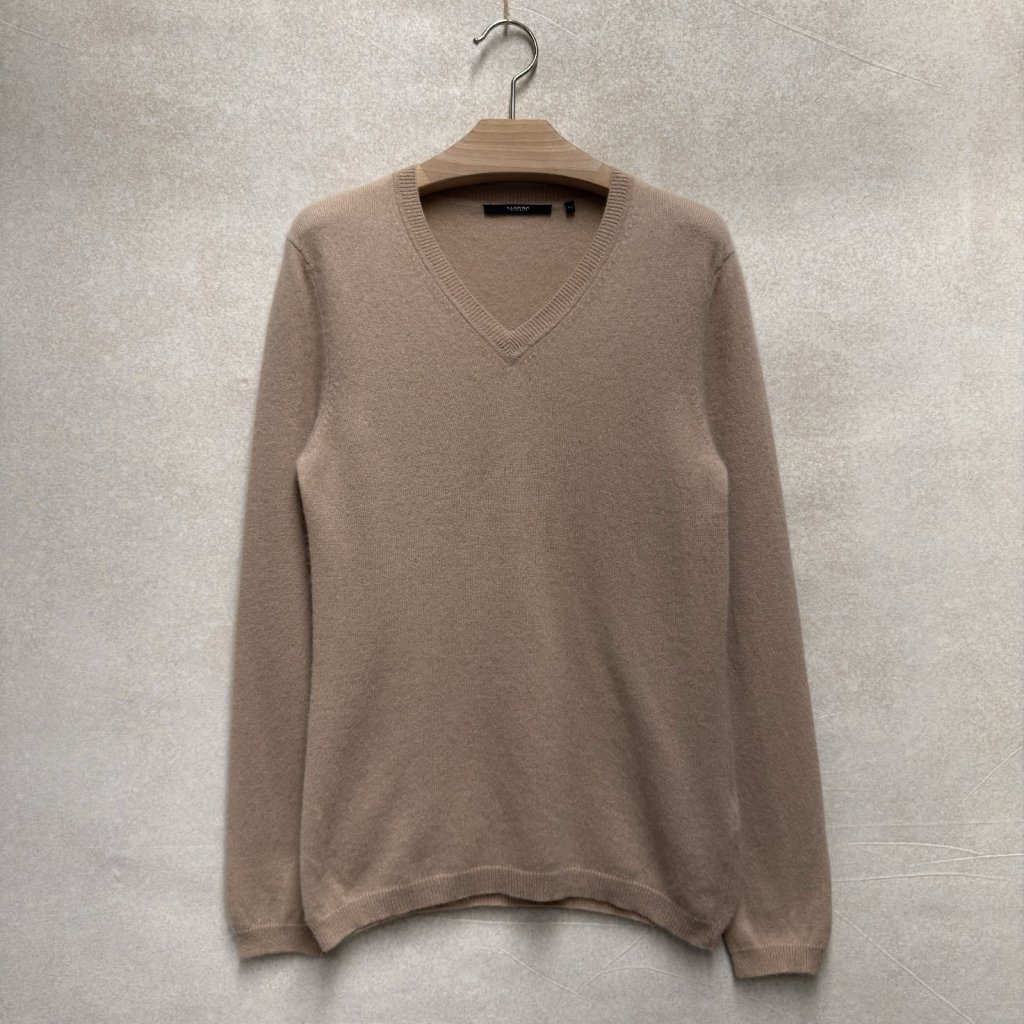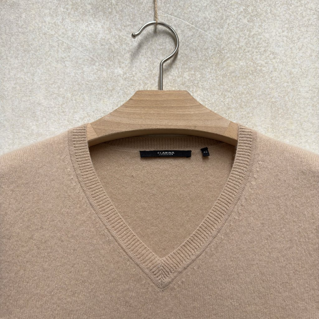 Béžový 100% kašmír s véčkovým výstřihem