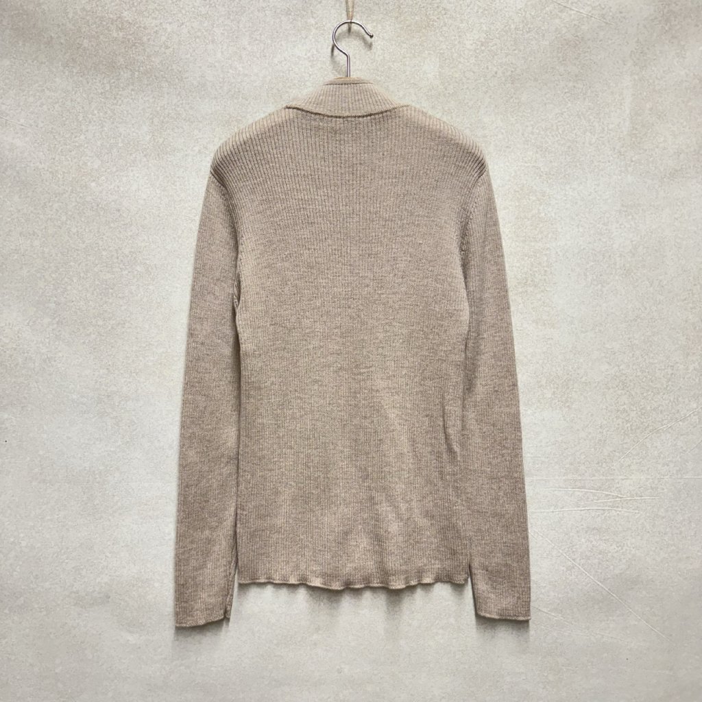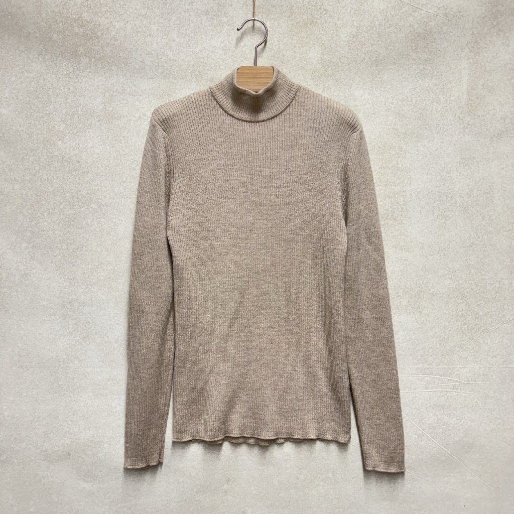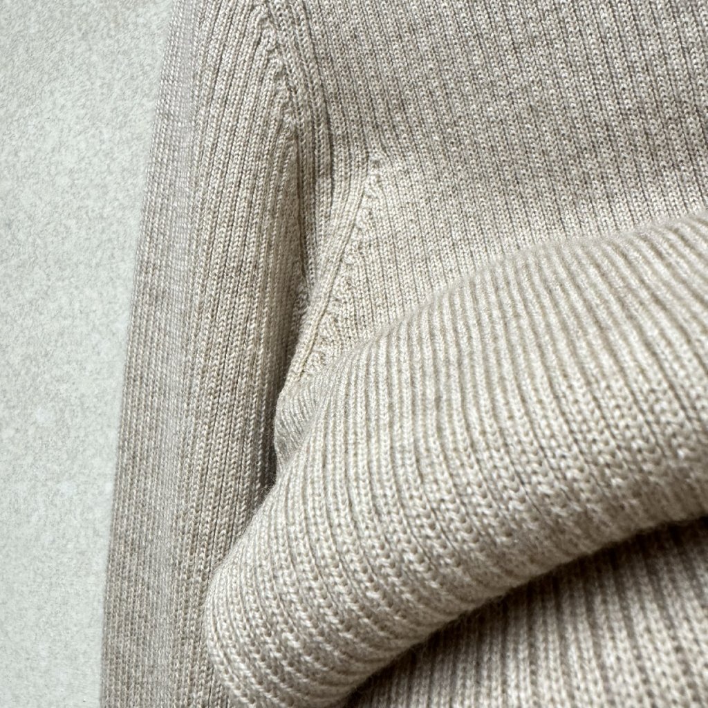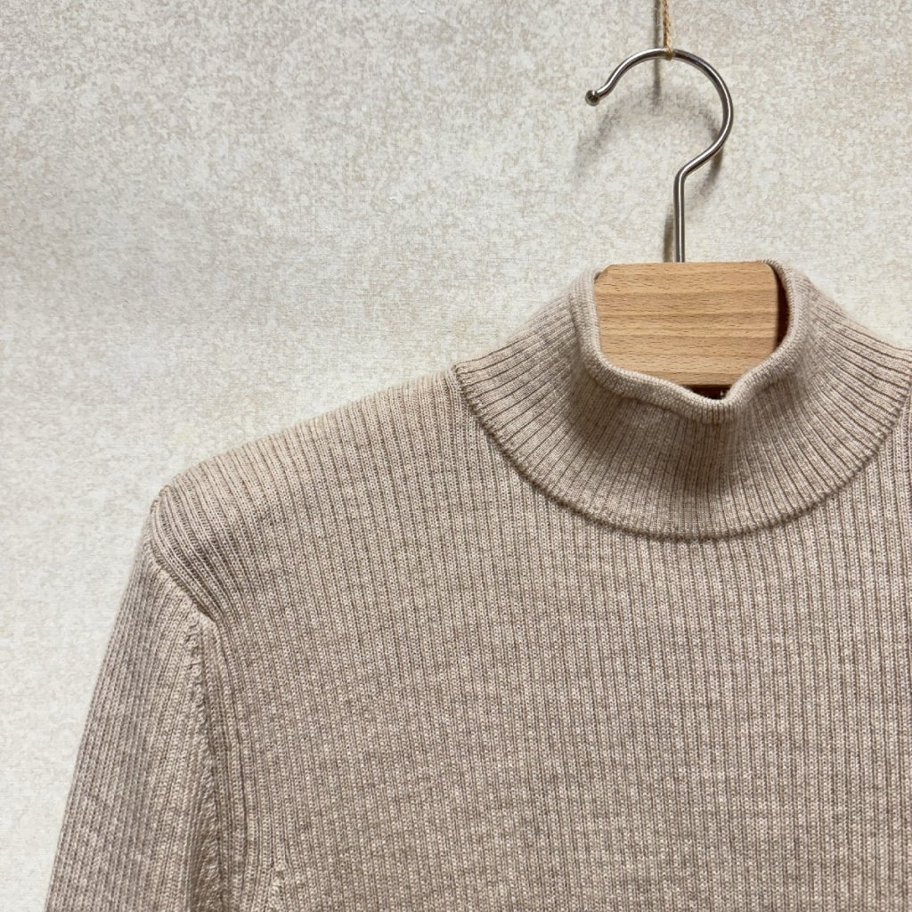 Béžový žebrovaný top se stojáčkem ze 100% vlny