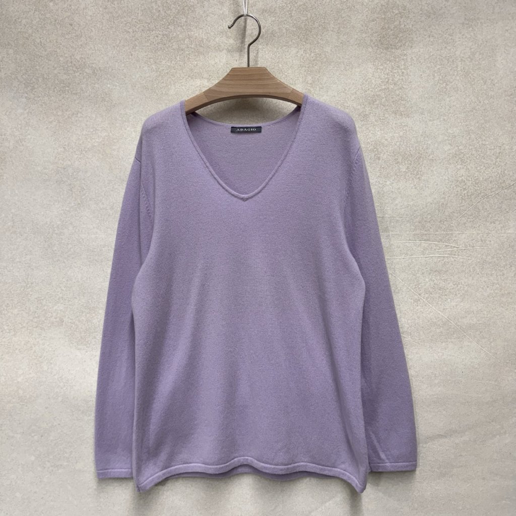 Lila jemný 100% kašmír s véčkovým výstřihem