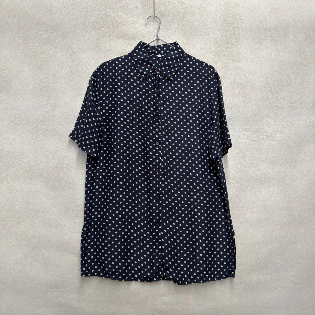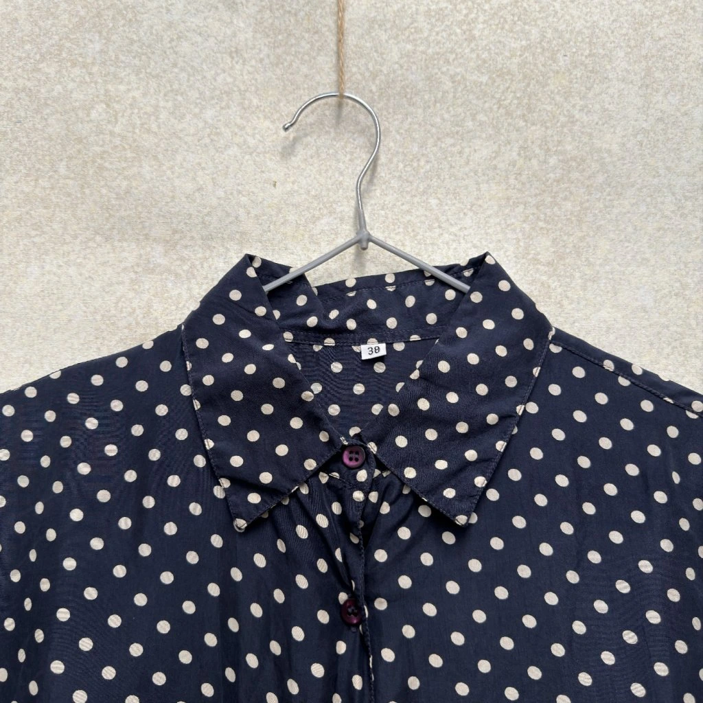 Modrá košile s bílými puntíky ze 100% hedvábí