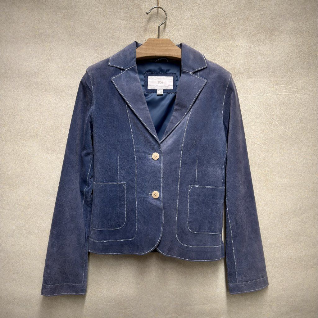 Modré sako ze 100% broušené kůže