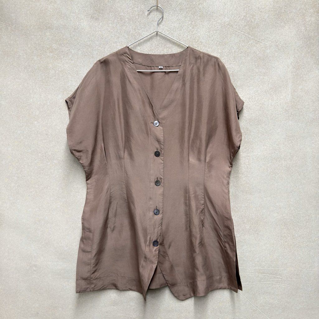Moka halenka s perleťovými knoflíčky a projmutím ze 100% hedvábí