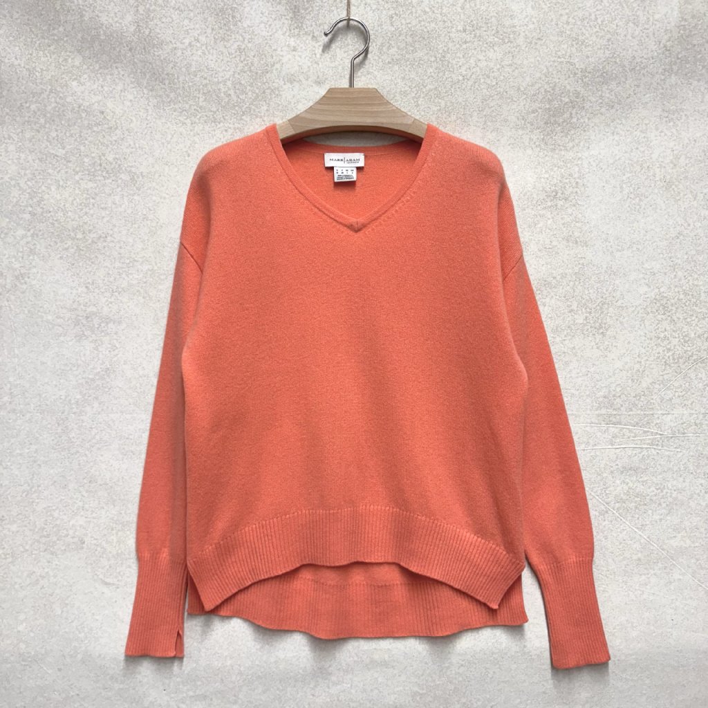Neonově oranžový 100% kašmír oversized střihu s kulatým výstřihem