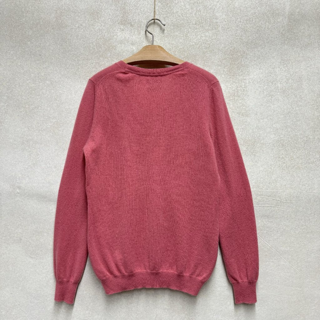 Růžový 100% kašmírový svetr s véčkovým výstřihem