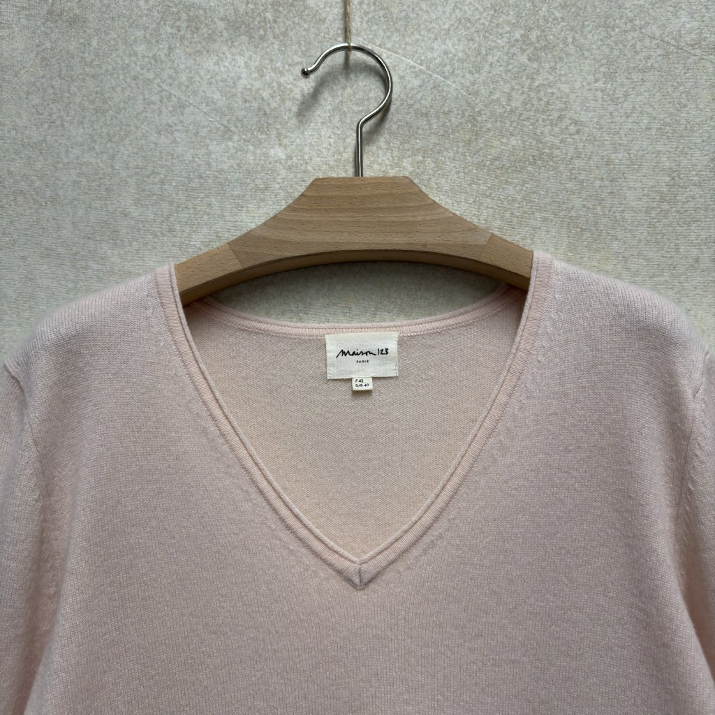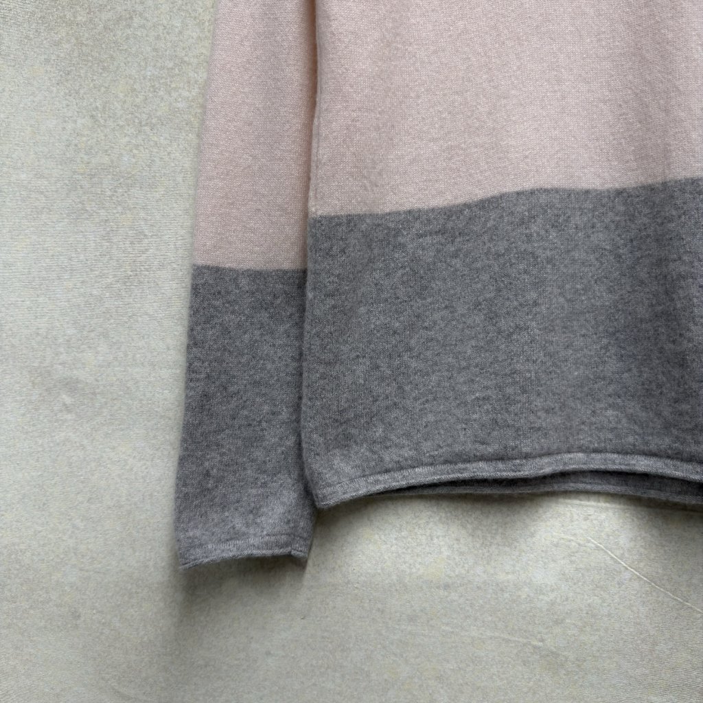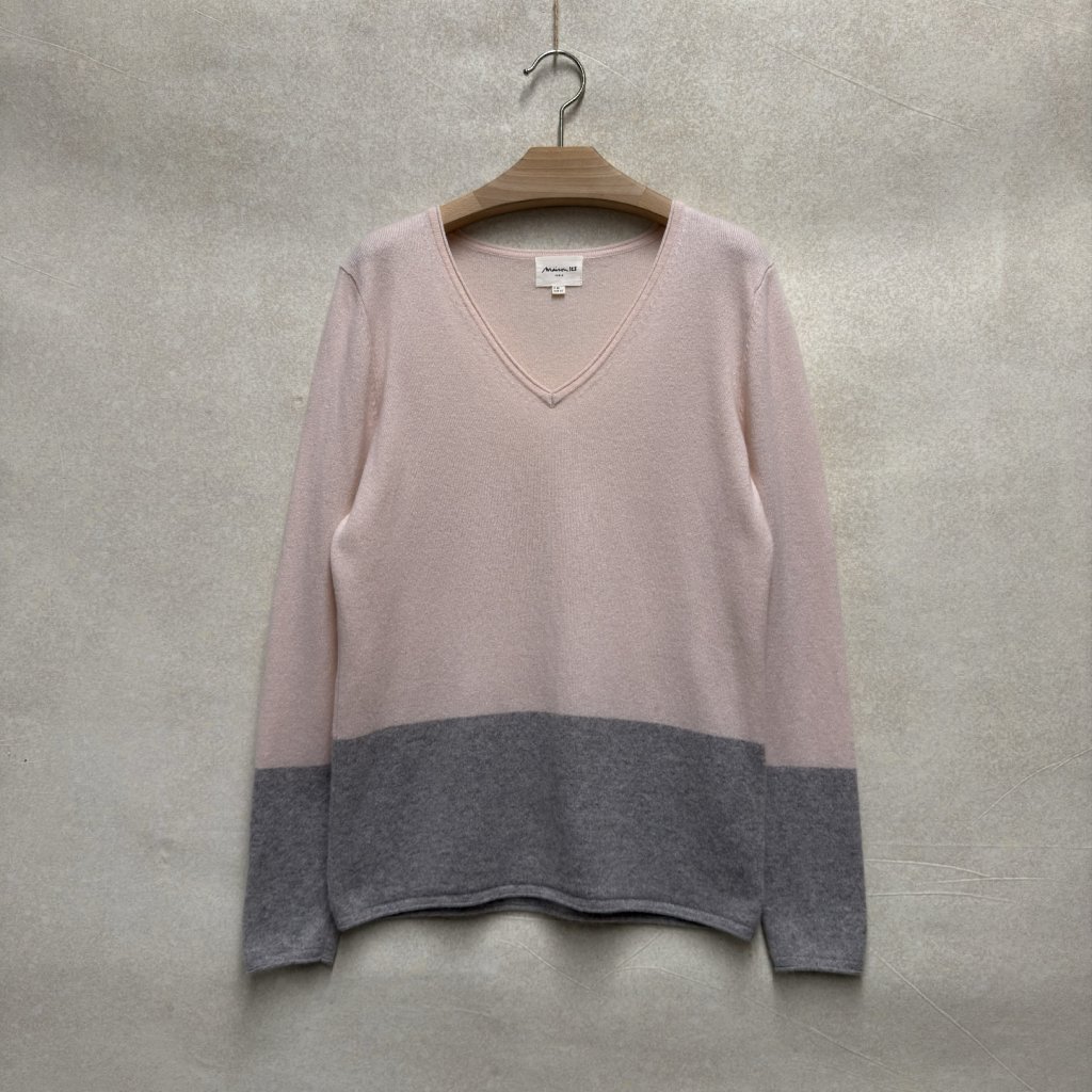 Sladký šedo-růžový 100% kašmír s véčkovým výstřihem