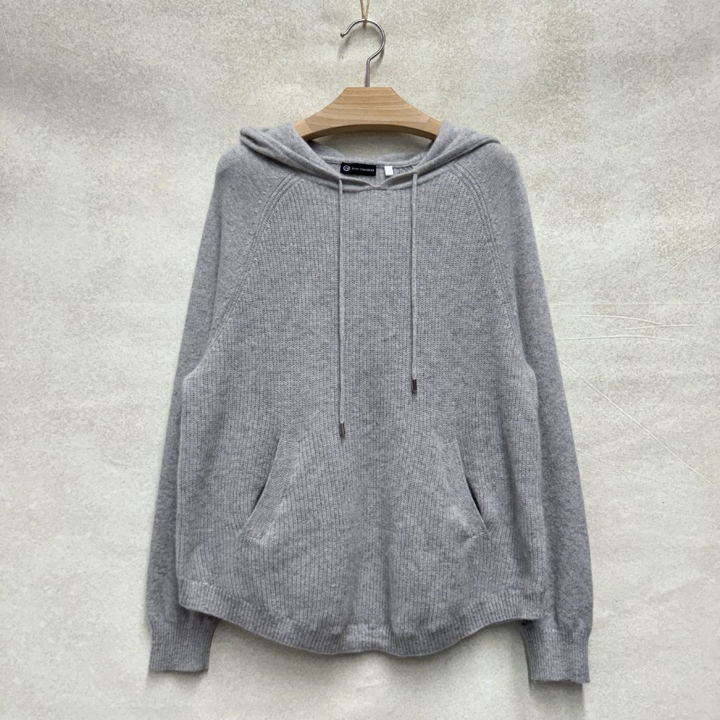 Světle šedý 100% kašmír s kapucí