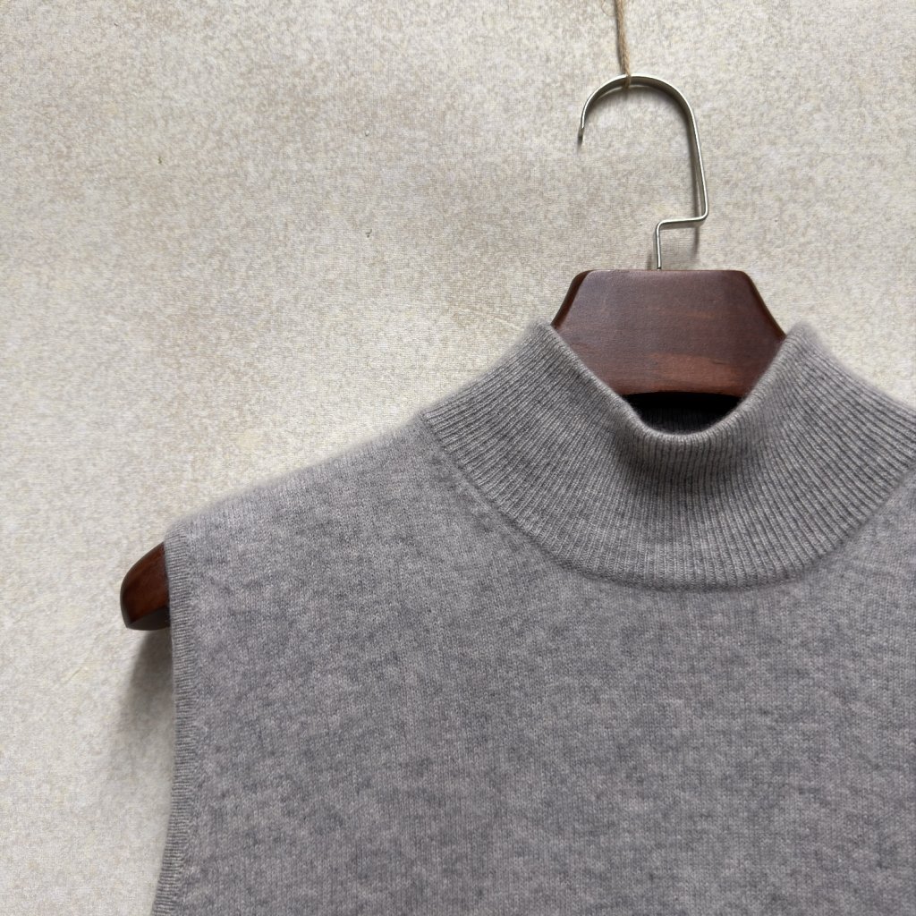 Světle šedý roláček bez rukávu z jemného 100% kašmír