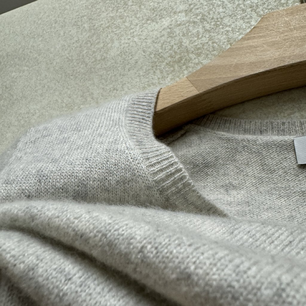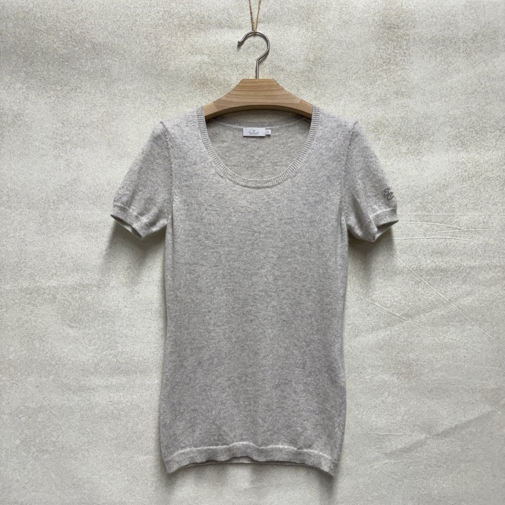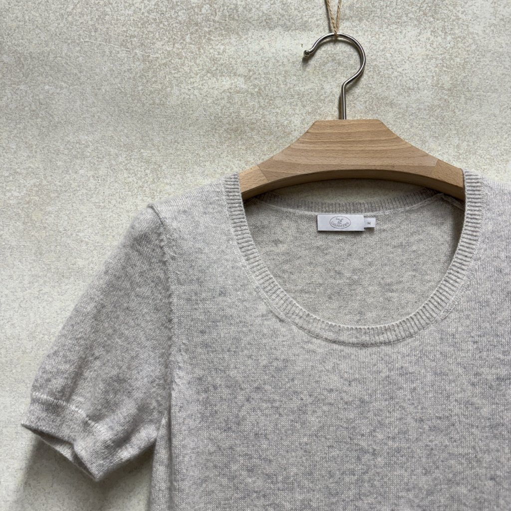 Světle šedý top s krátkým rukávem ze 100% kašmíru