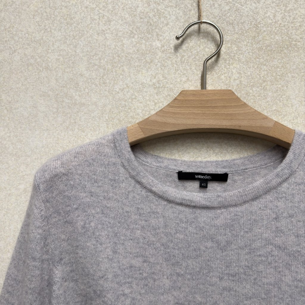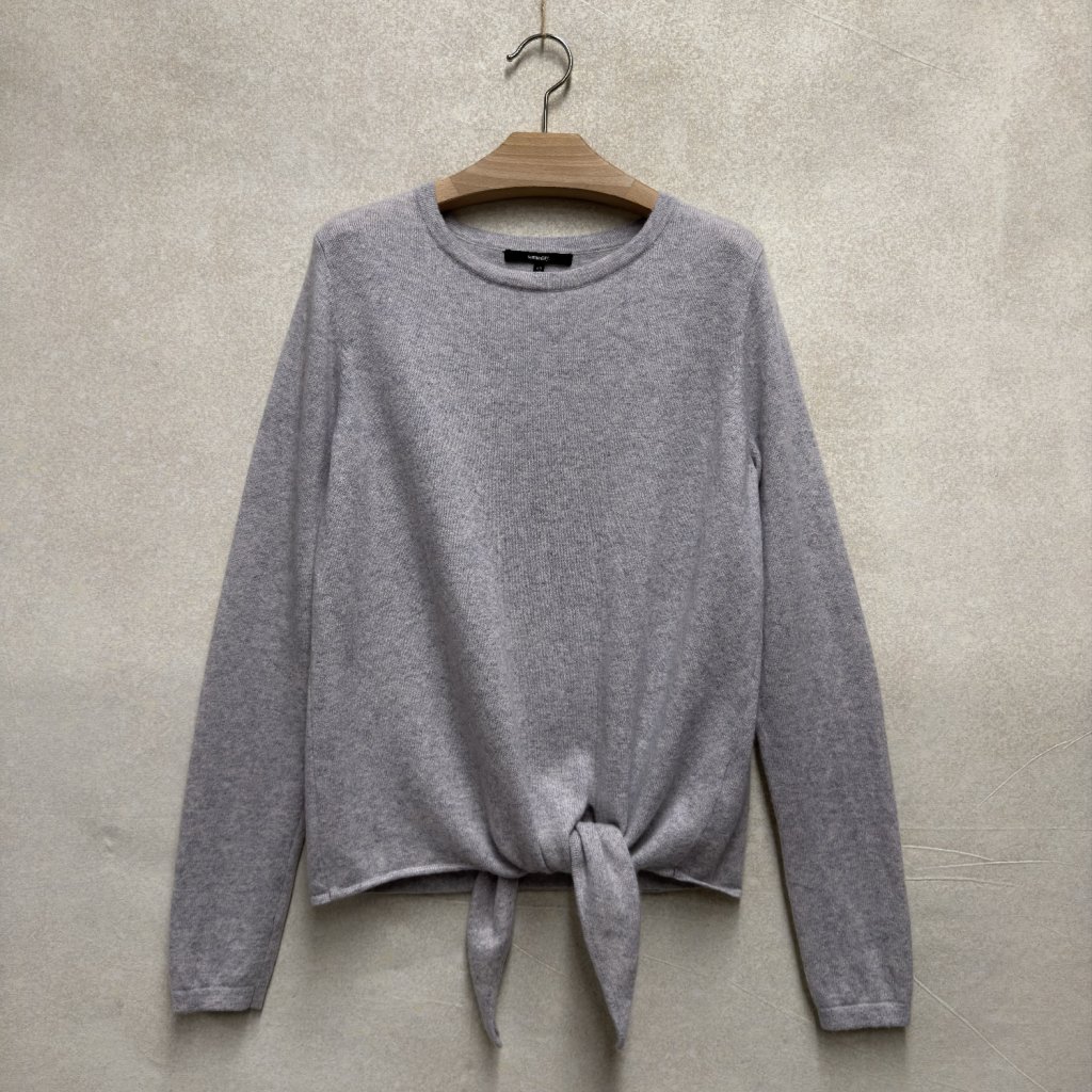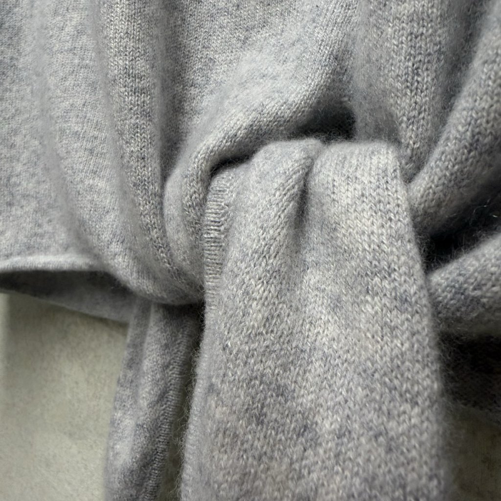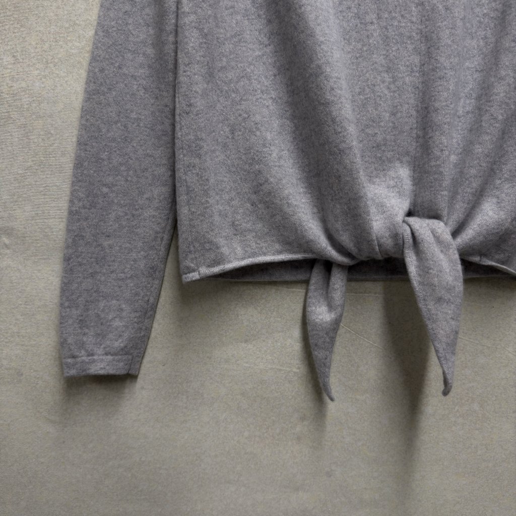 Světle šedý vlněný svetr s příměsí kašmíru a uzlíčkem