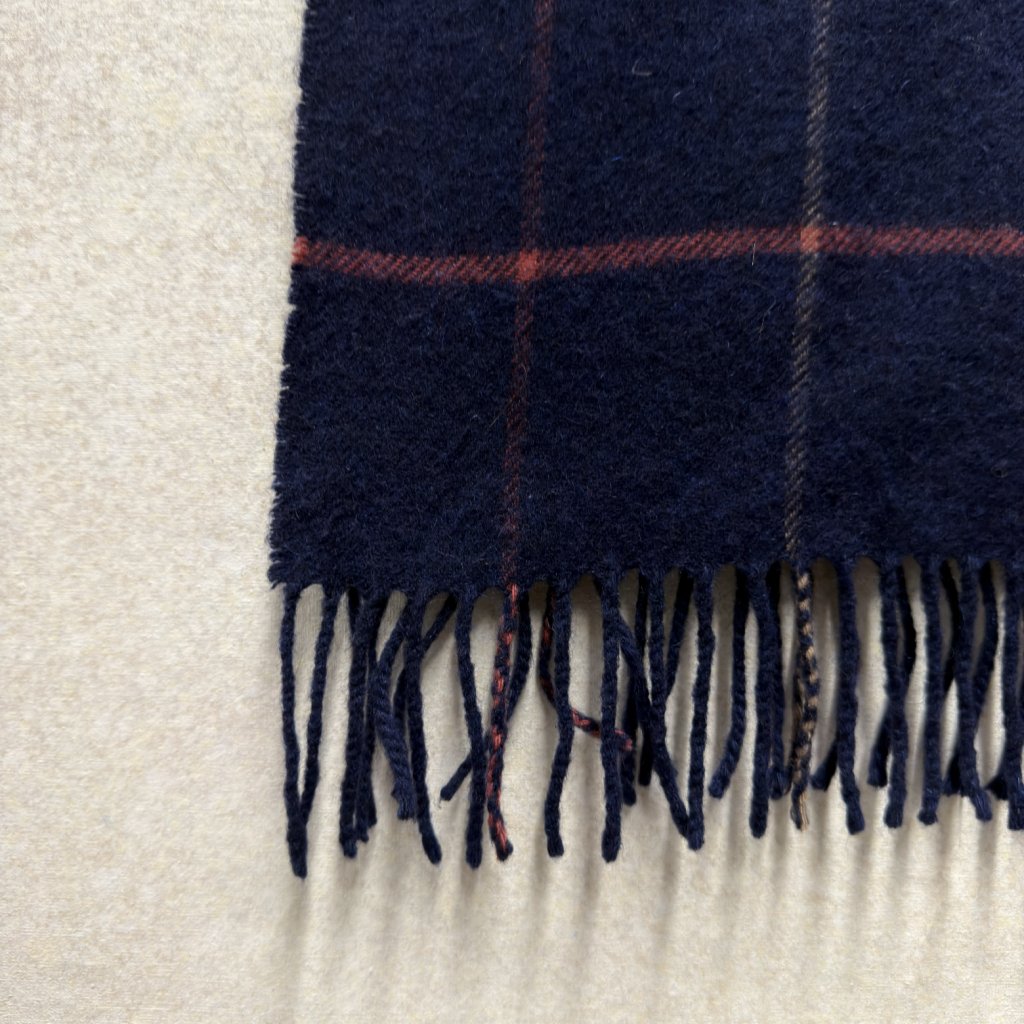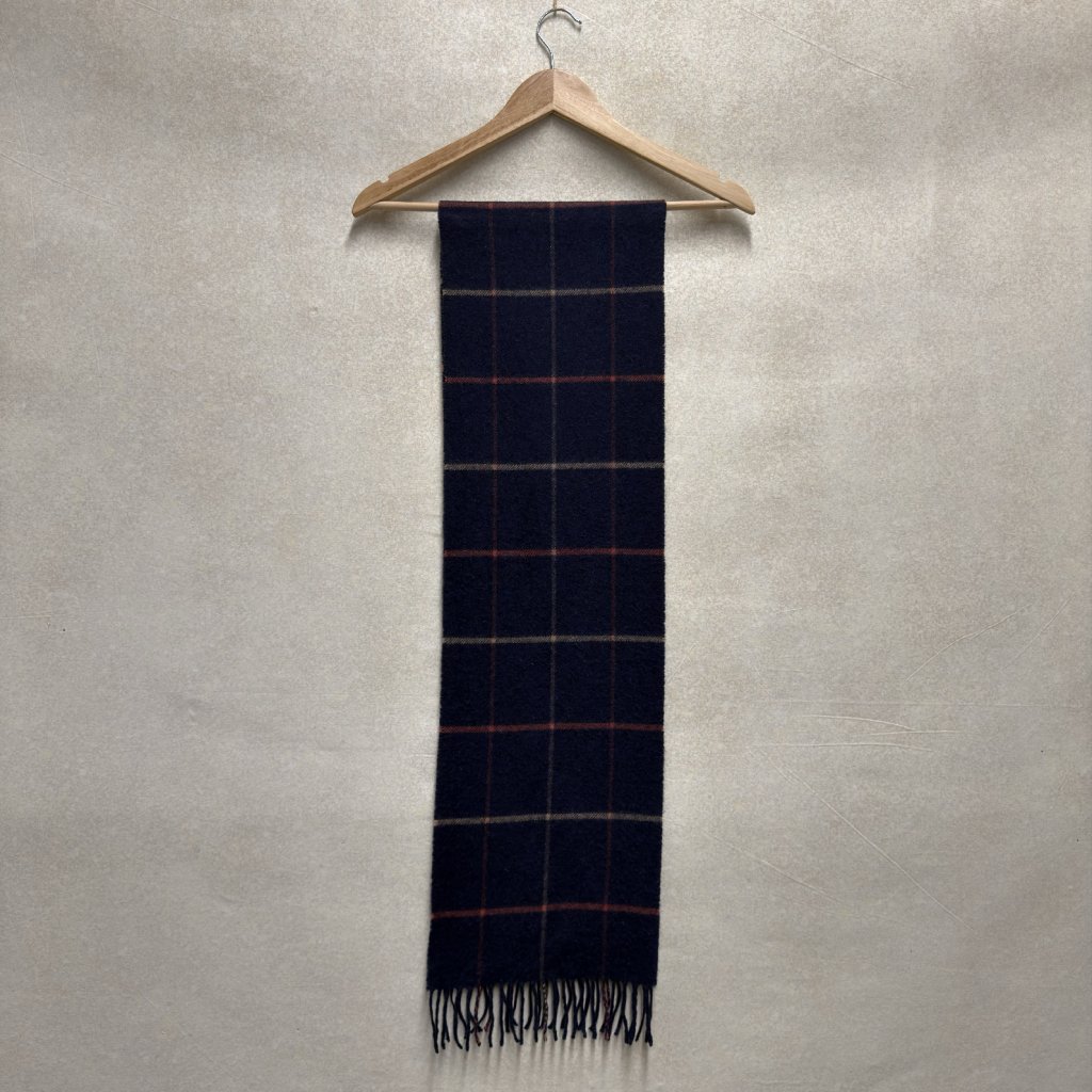 Tmavě modrá kostkovaná šála ze 100% kašmíru