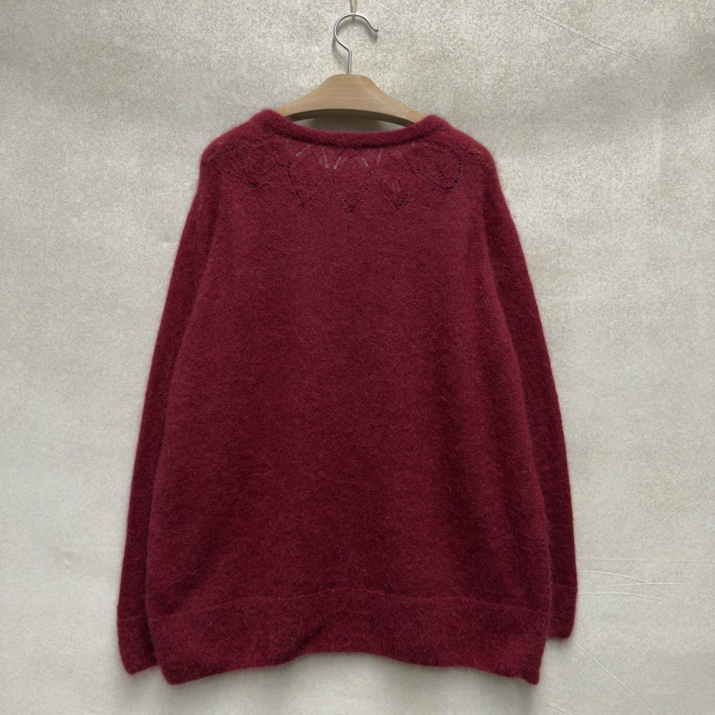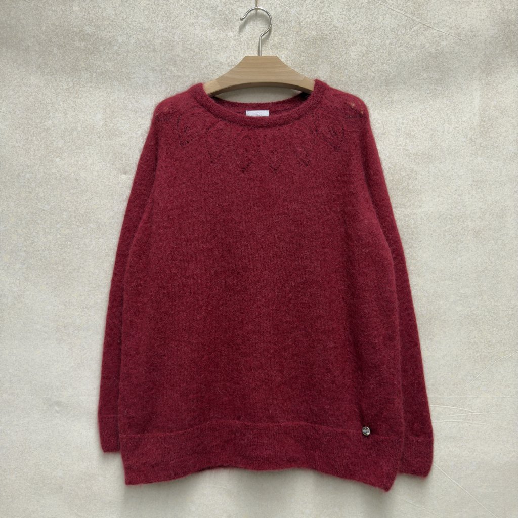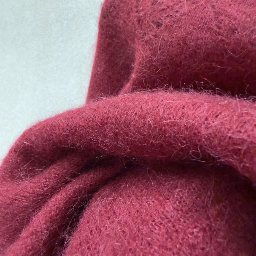 Vínový vousatý svetr z alpaky a mohéru s vyšíváním u krku