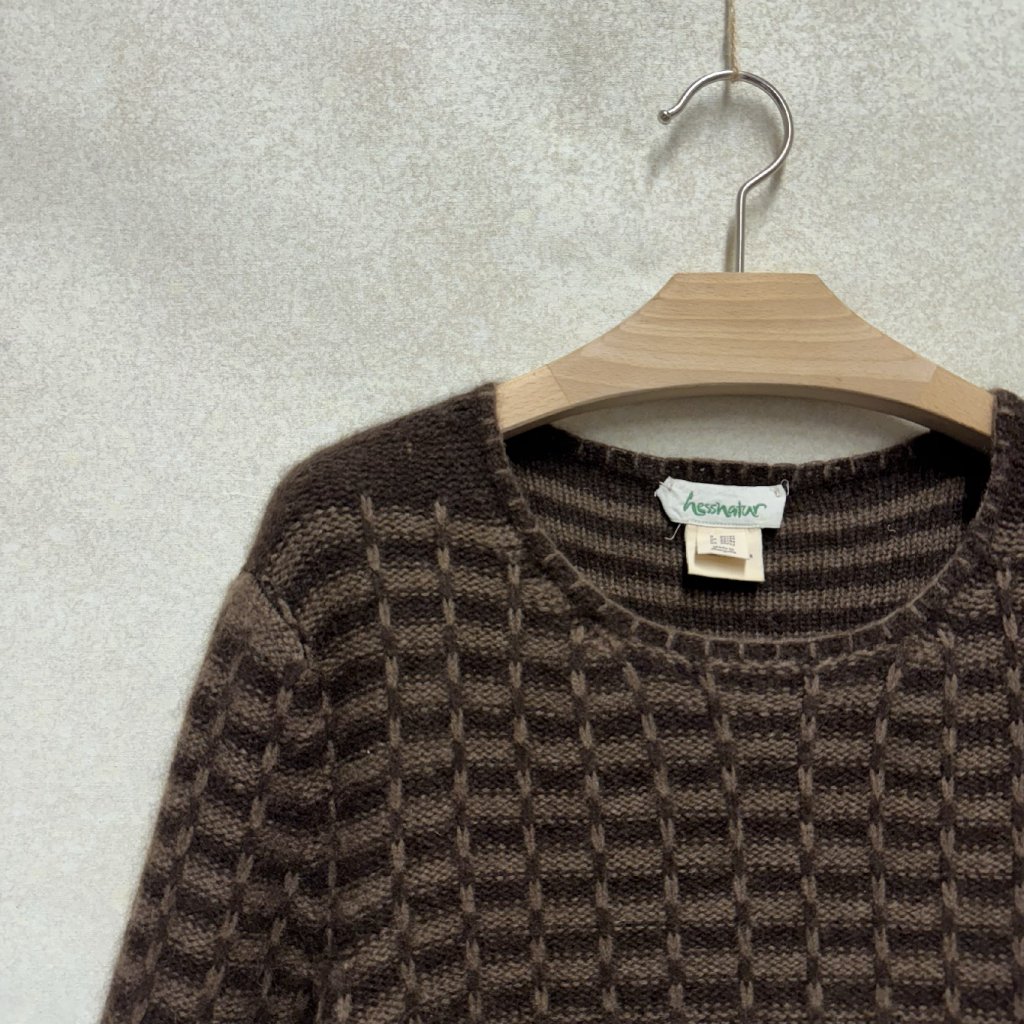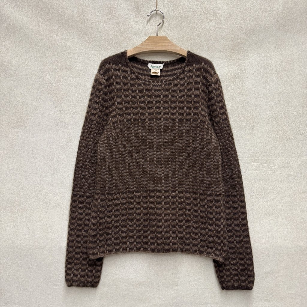 Vzorovaný hnědý svetr ze 100% jačí vlny
